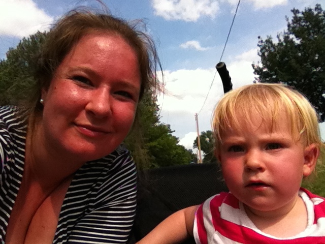 Så da vejrudsigten i formiddags kun spåede 30 % sandsynlighed for regn var jeg ikke afskrækket. Vi manglede mælk og et par andre småting, så ungerne og jeg begav os afsted på gåben, da vi nu kun har en bil og den havde manden taget til arbejde. Vi havde en god halv times gåtur til butikken. Det blæste og skyerne fór forbi, men luften var dejlig varm og vi hyggede os med at se på ænder og sten undervejs. I butikken fik vi fundet vores varer og mens vi betaler går det op for mig at det er begyndt at regne udenfor. Og ikke bare regne, men mega øse, pøse ned og tordne. Øv bøv, der var ikke andet at gøre end at sætte os i butikkens lille cafehjørne og spise et par af vores nyindkøbte æbler.